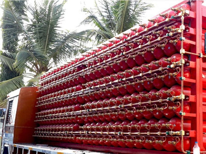 Quads / Cascades are a bunch of cylinders, all interconnected, filled or discharged together and loaded or unloaded as a bunch. Quads/cascades are used where high volume of gas is required to be fed at a regular flow rate and pressure without an interruption. In this kind of applications or industries the usage of conventional gas cylinders on one at a time, becomes highly undesirable because of time wasted in cylinder changeover, cylinder handling, gas wastage etc. Also, when higher quantity of gas is to be fed as per process requirement, use of single cylinder becomes nonfeasible due to its low gas storage volume constraint. For these kinds of applications, gas cylinder quads or cascade or pallets or banks are used.