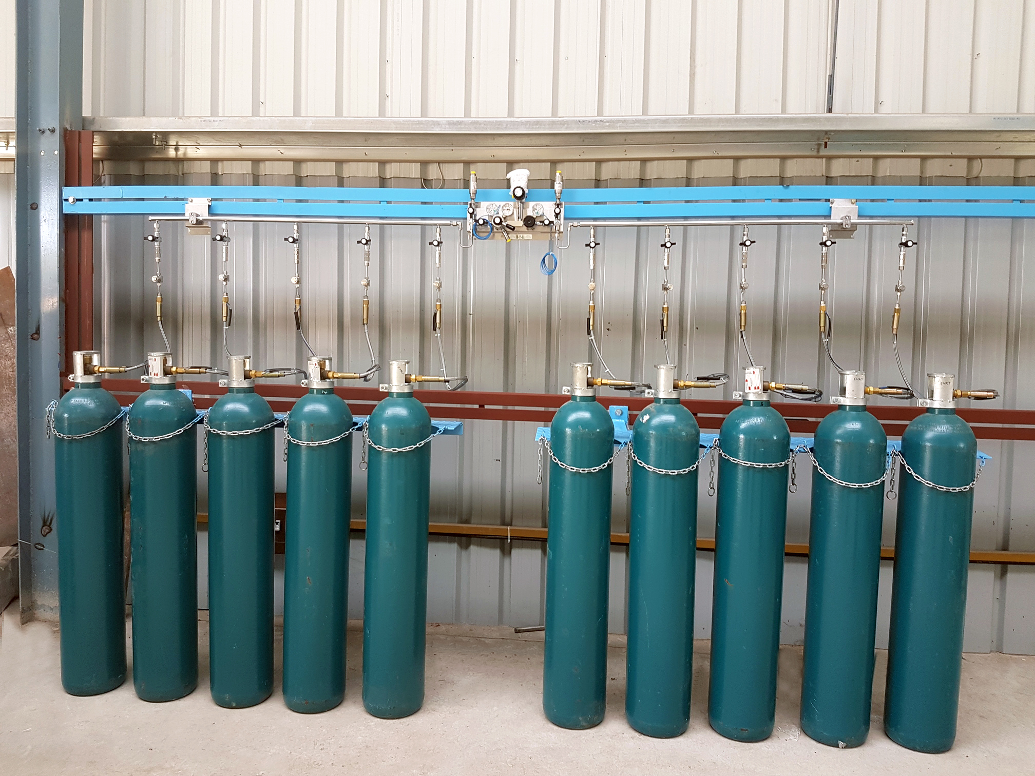 Gas Manifold is a group of Gas Cylinders connected in series and is designed to supply gas through a pipeline to an equipment or building.