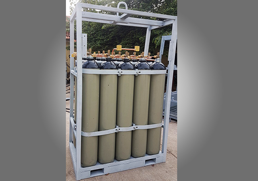 Manifold Cylinder Pallet is a bunch of cylinders, all interconnected, filled or discharged together and loaded or unloaded as a bunch. Manifold Cylinder Pallet are used where high volume of gas is required to be fed at a regular flow rate and pressure without an interruption. In this kind of applications or industries the usage of conventional gas cylinders on one at a time, becomes highly undesirable because of time wasted in cylinder changeover, cylinder handling, gas wastage etc. Also, as gas is need to be fed as per process requirement, use of single cylinder becomes non-feasible due to its low gas storage volume constraint. For these kinds of applications, Manifold Cylinder Pallets are used.